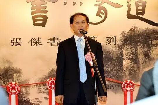 海江田万里在致辞中指出:张杰先生不仅是优秀的书法家、艺术家,而且在促进日中间艺术组织的交流和中日友好上也做出了很大的贡献。