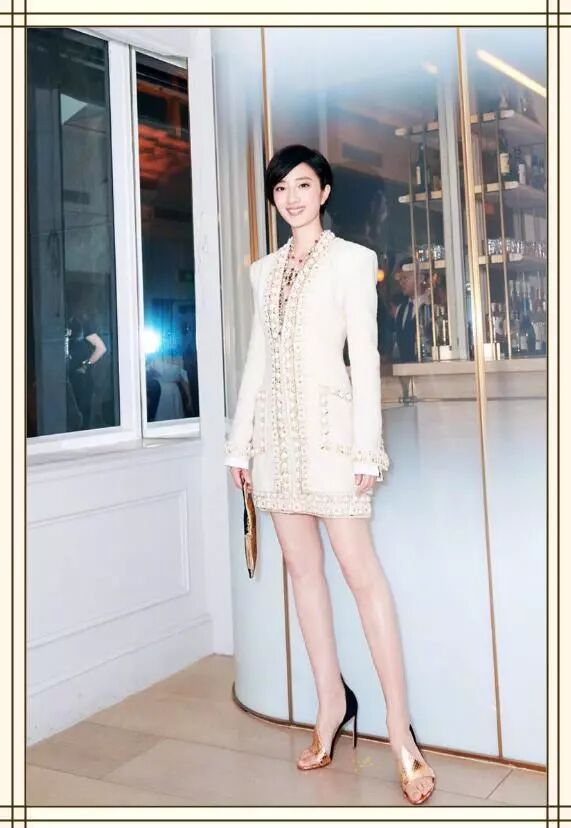 米白色的深v领连衣裙穿在桂纶镁的身上倒是让她多了几分女人味,即使是短发也无损整个人的气质,加上露出来的匀称长腿更是吸睛夺目。