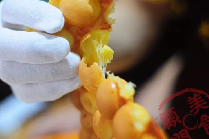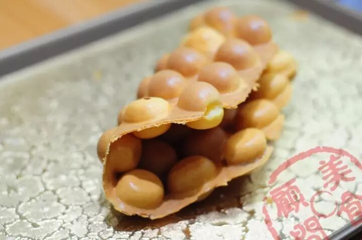 看着新鲜出炉的酥脆的鸡蛋仔,