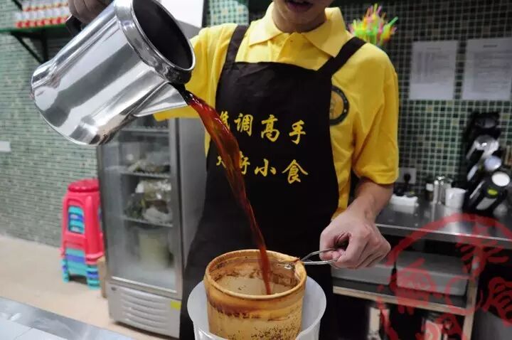 都说“鸡蛋仔+冻(咸)柠(柠)茶(七)”才是正宗的香港的风味,所以,吃鸡蛋仔加上一杯饮品才是绝配。冻柠茶、咸柠七、丝袜奶茶、鸳鸯这些都是我们熟悉的香港特饮。这里每一杯茶的制作过程也是相当讲究的,在现场可以看到整个制作过程。