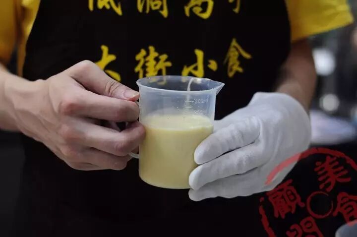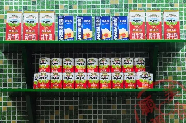瞧这店里货架上摆满的都是制作的原材料!光是调一份鸡蛋仔的蛋液就要用上一整罐荷兰进口黑白淡奶。