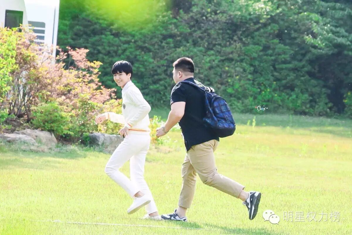 因为只有他,能在阳光灿烂天气里,陪着王俊凯散步在草地上(小凯全程笑脸有木有!!)↓↓↓