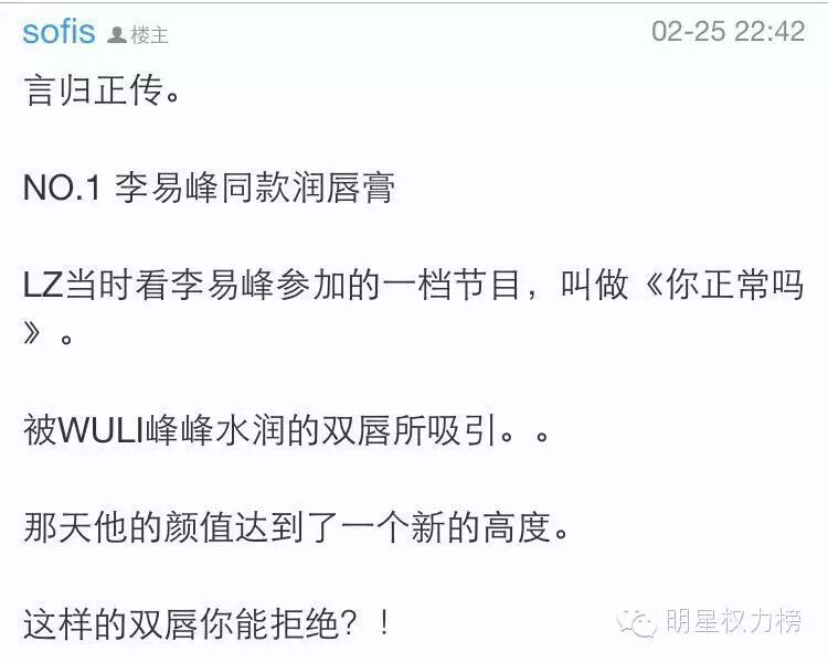 紧接着第一个被安利的就是李易峰在录制《你正常吗》的时候那水润的双唇,以及他用的润唇膏!!!