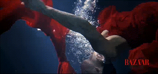 这估计也是芭莎史无前例空前绝后在水下拍摄杂志大片的唯一一人。