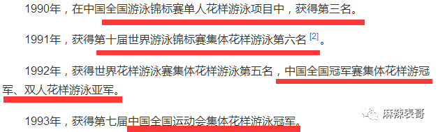 可以看一下她的成绩,全国花样游泳是数一数二的,世界游泳锦标赛里,也拿了前几名。