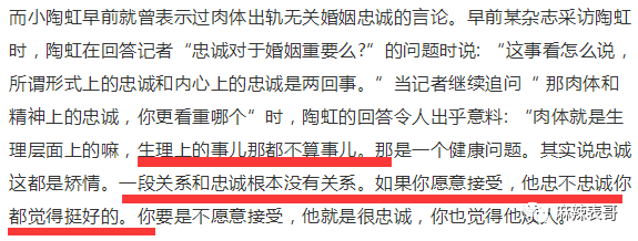 她也曾有大胆之言,说生理上的事儿都不算事,一段关系和忠诚根本没有关系。
