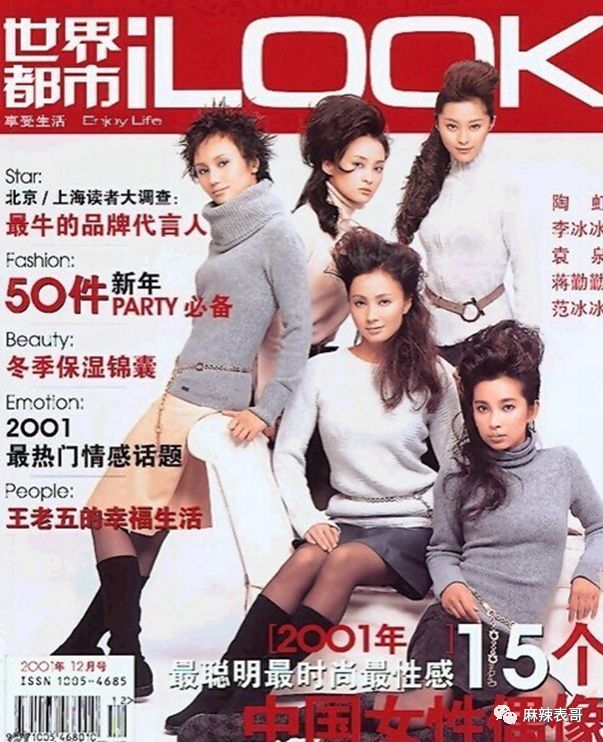 看一下2001年的杂志照,袁泉、范冰冰、李冰冰、蒋勤勤、陶虹,这五人里,陶虹是绝对的C位,可想而知,她当年的地位。