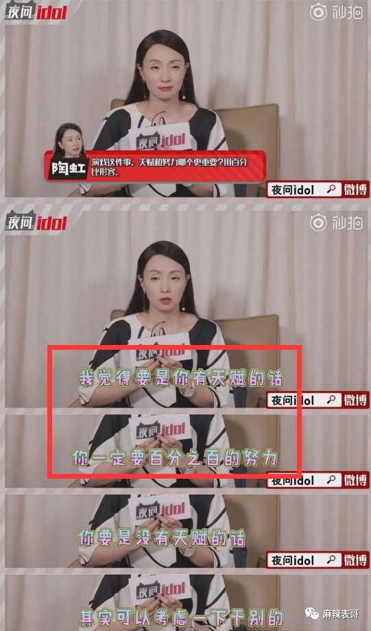 陶虹也说过类似的话,有天赋的话,就要付出百分百的努力,没天赋,可以考虑一下干别的。
