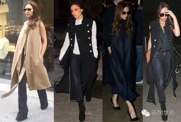 贝嫂维多利亚有三个帅气的儿子和一个可爱的女儿,她还是全球公认最会穿衣的明星,气场强大的装扮,帅气拉风的墨镜和永远都属于她的高跟鞋,将她每次的出境的造型都体现得无比抢眼和完美。贝嫂的穿搭术简约而干练,非常适合职场OL的打扮,适合年龄25-35岁,对事业有独特追求的女生。