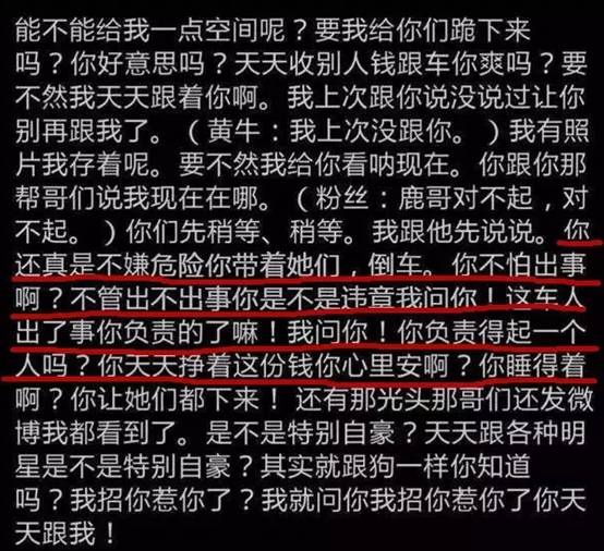 怒喷了黄牛不顾自己粉丝的生命,带着他们追车飙车。还问了黄牛收了粉丝们多少钱,说这个钱他来出,要求黄牛立刻把妹子们全都安全送回市区。