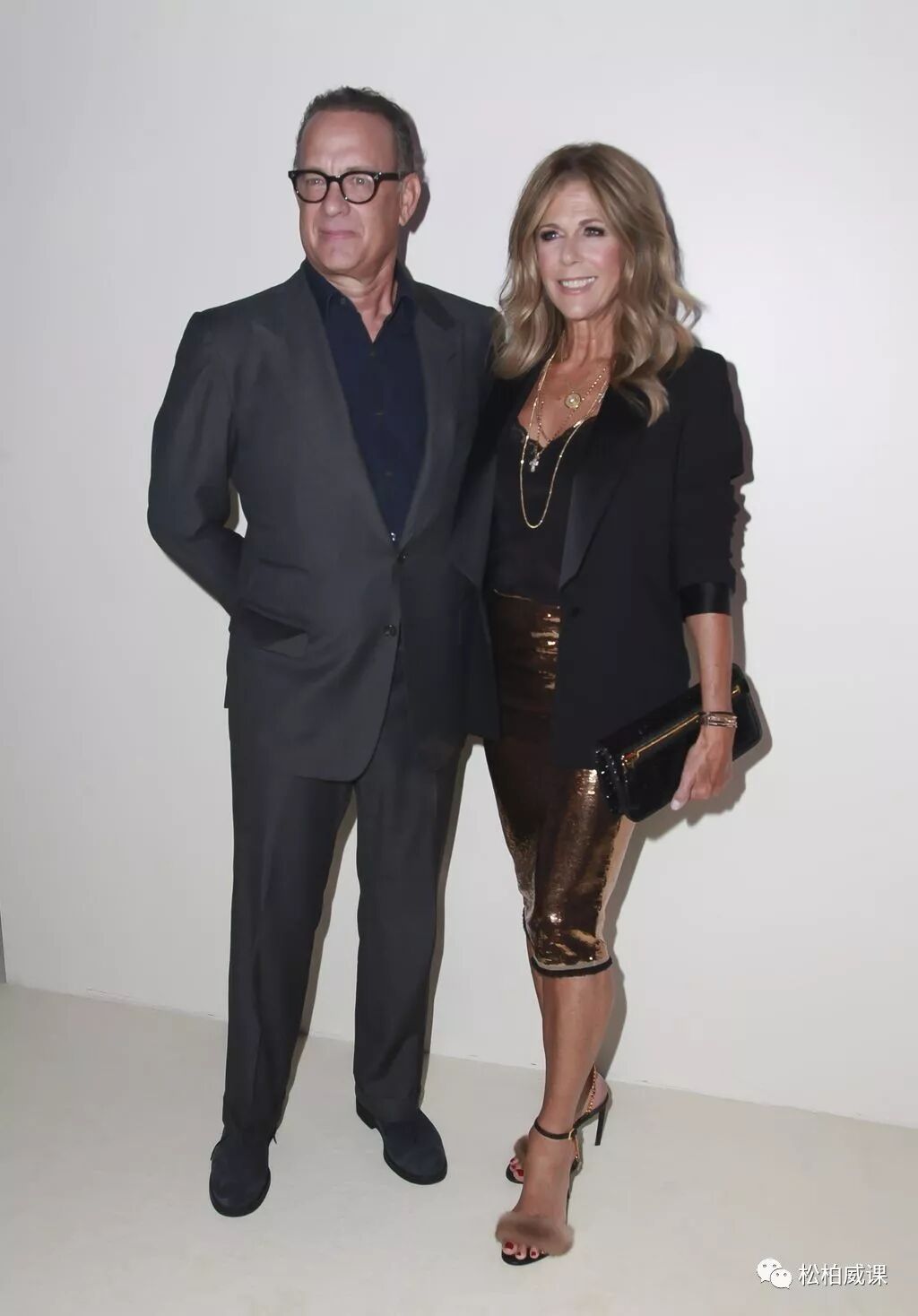 演员汤姆·汉克斯(Tom Hanks)和妻子丽塔·威尔逊(Rita Wilson)在汤姆福特2019年春夏系列纽约时装周,2018年9月。