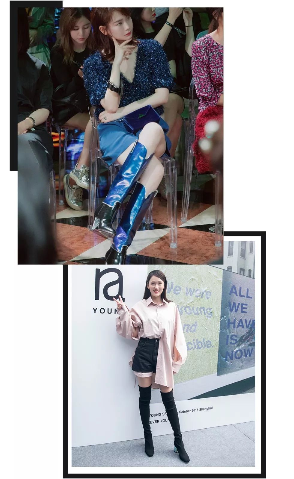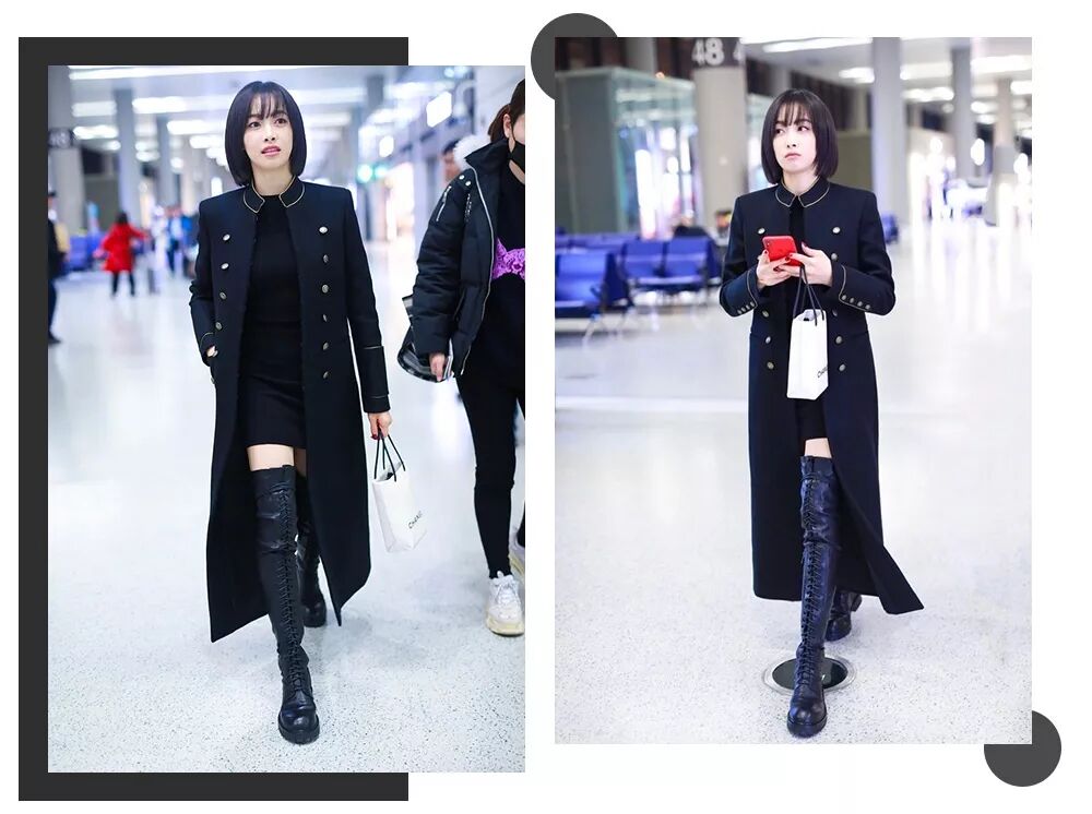 小个子的王子文就很喜欢用过膝靴来加长腿型,把注意力和目光都引导了她细长匀称的腿上,显得身材比例很好▼