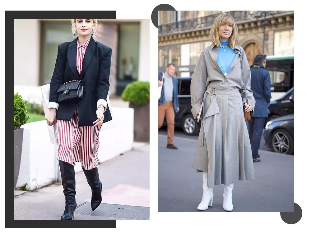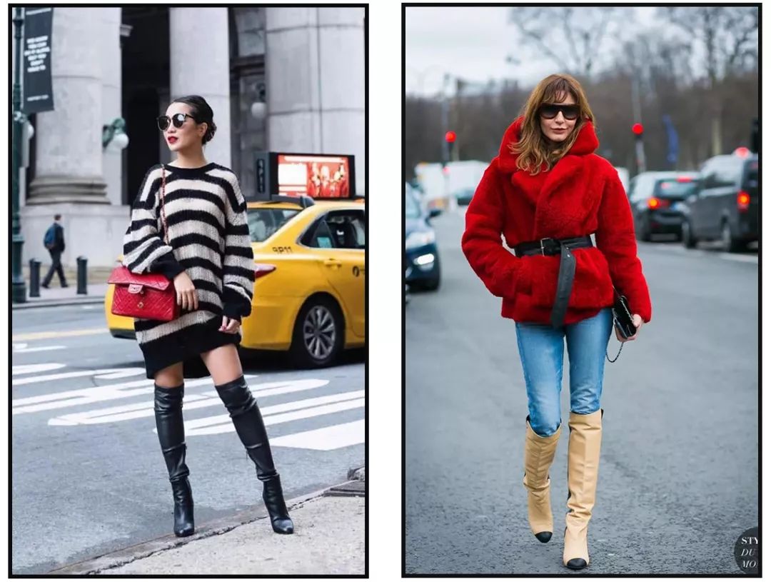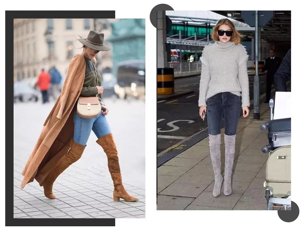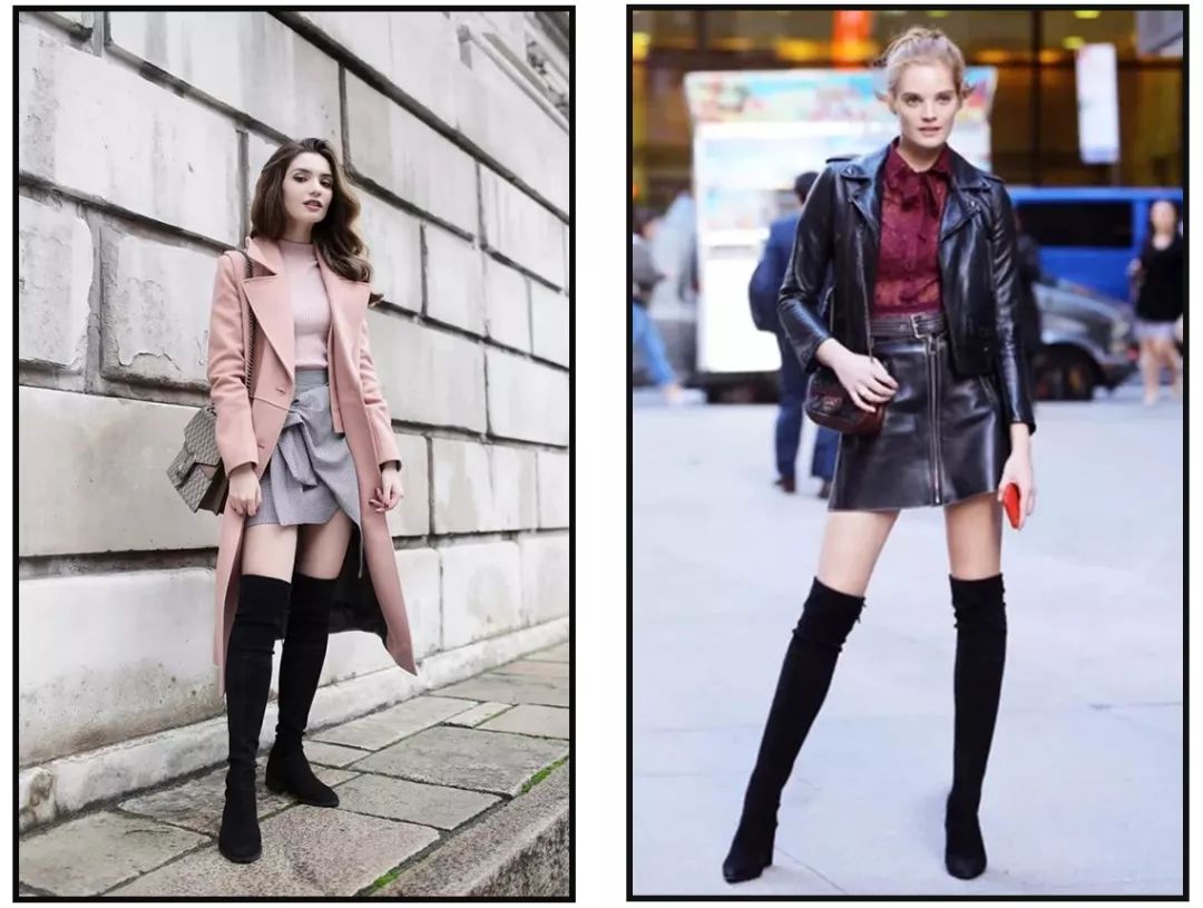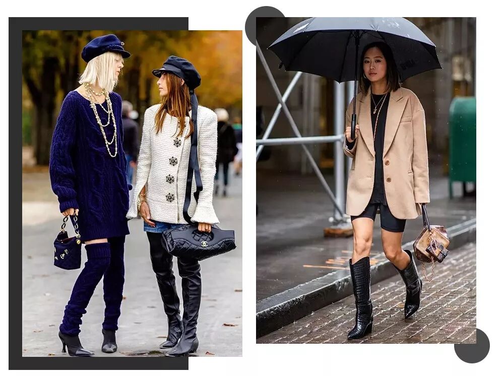 过膝靴和及膝靴比较百搭,小个子小短腿也能拉长腿部比例,腿型有缺陷的,比如说O型腿,X腿型就比较适合宽松一点的靴筒,太过紧贴的容易暴露腿型缺点。