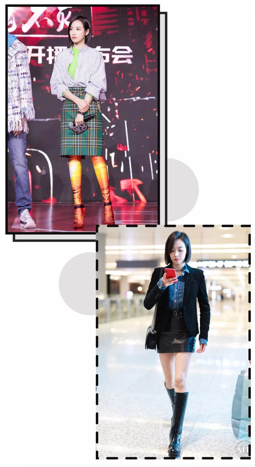 举个栗子,比起贴身的高筒靴,宋茜还是更适合宽松一点的筒靴,不然小腿真的有点瞩目233333……