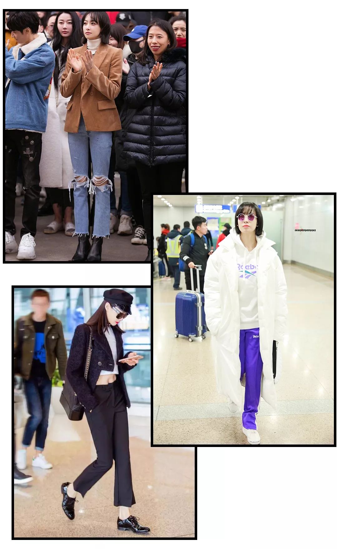 所以平时宋茜穿直筒、微喇、运动风的裤子比较多,既能遮住不完美的小腿线条,又显得干净利落▽