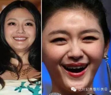 章子怡近几年也发福了,如今结婚了会不会发福的更厉害,昔日的尖下巴如今变成了肥嘟嘟双下巴,右图子怡的笑容不忍直视,整张脸都变形了。