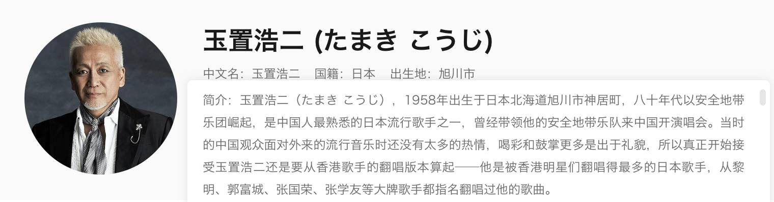 QQ音乐里有玉置浩二的个人首页,感兴趣的朋友可以去听听看他的音乐。「实在抱歉很多我想分享给你们的歌无法放在主页上来所以我只能用这种方法让大家听音乐」