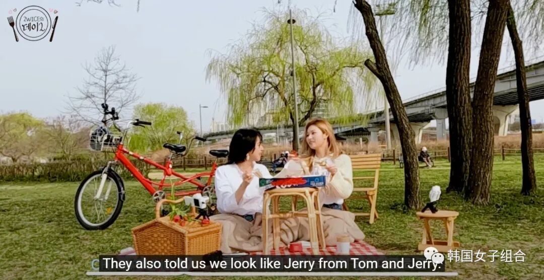 Twice Sana和彩瑛在汉江吃着从商店买来的小吃,边回忆两人第一次见面的练习生时期。