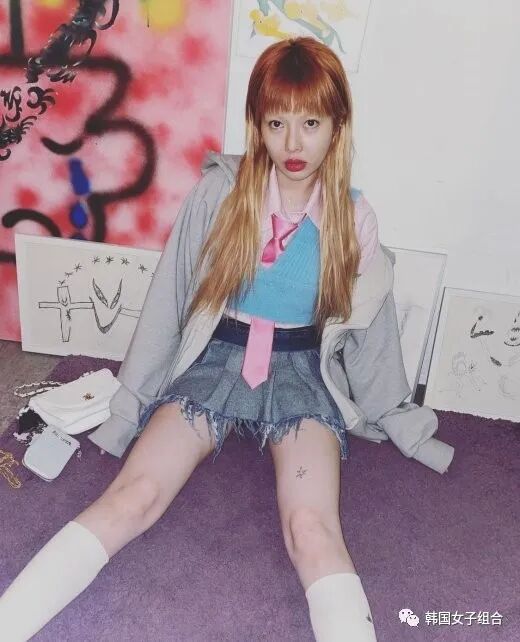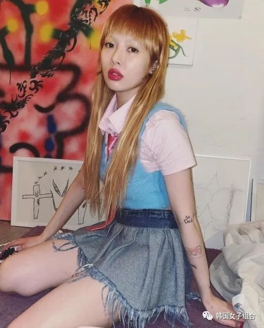 在公开的照片中,泫雅臀部下方的纹身以大胆的姿势显露出来,引人注目。它看起来像一条用粉红色墨水绘制的丝带。此外,手臂、大腿、手部等各种图案的纹身也引起了人们的注意。