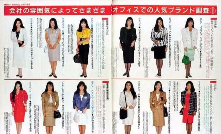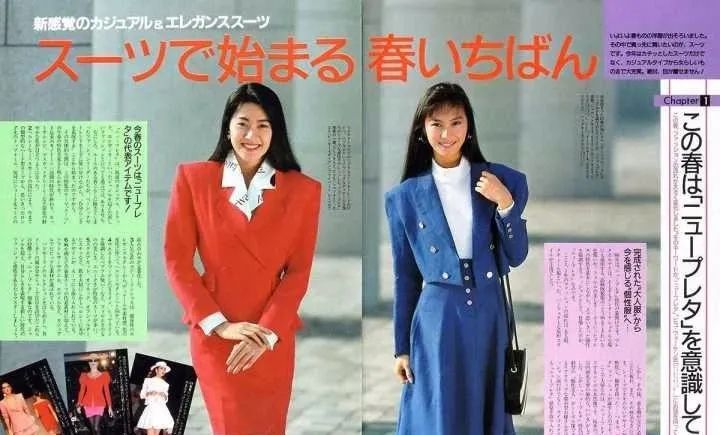 上面交代了太多背景,我就不赘述了。在当时的“现代化楼宇间”(相当于现在的写字楼),非常流行的一种穿搭就是垫肩职业装。