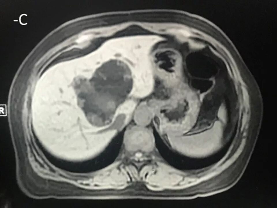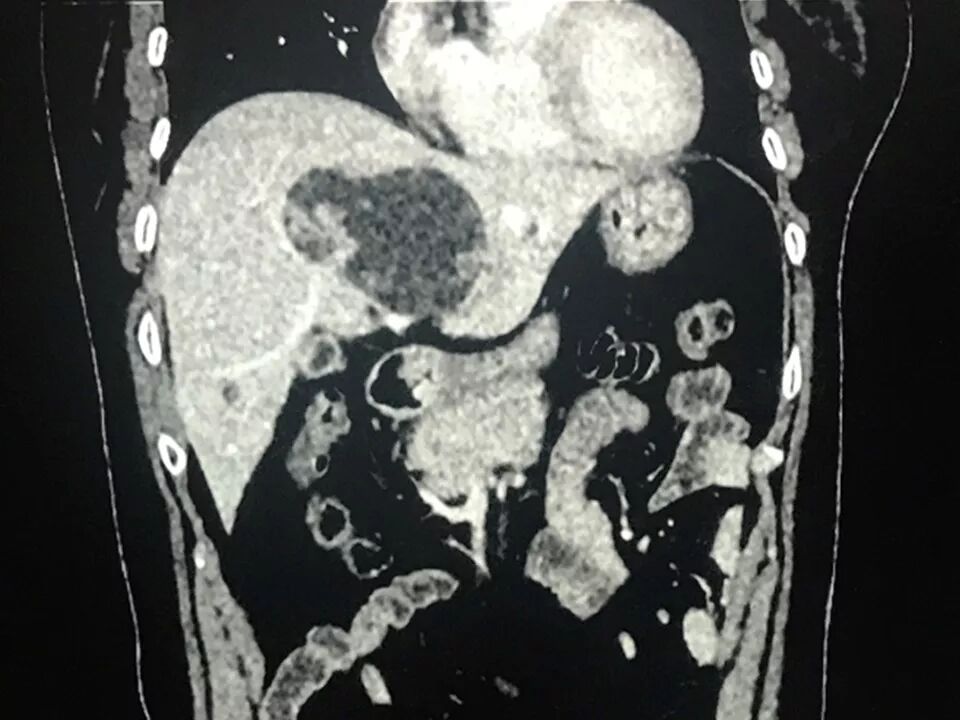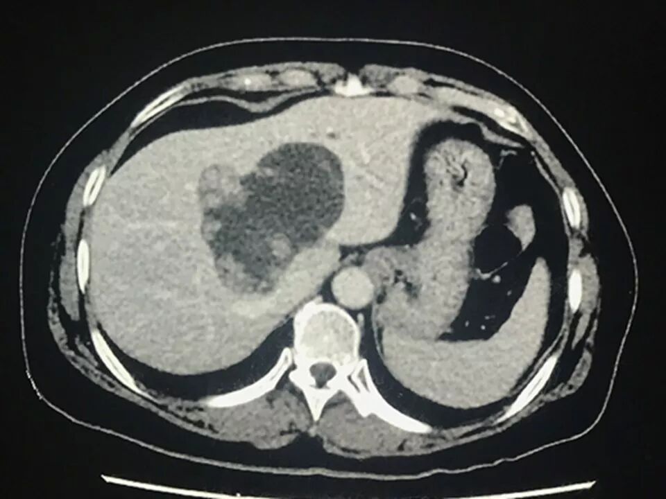 患者,女,55岁。体检发现肝内占位。肿瘤指标(AFP: 2.1ng/ml,CEA: 0.9ng/ml,CA19-9: 5.2U/ml)及乙肝五项均阴性。