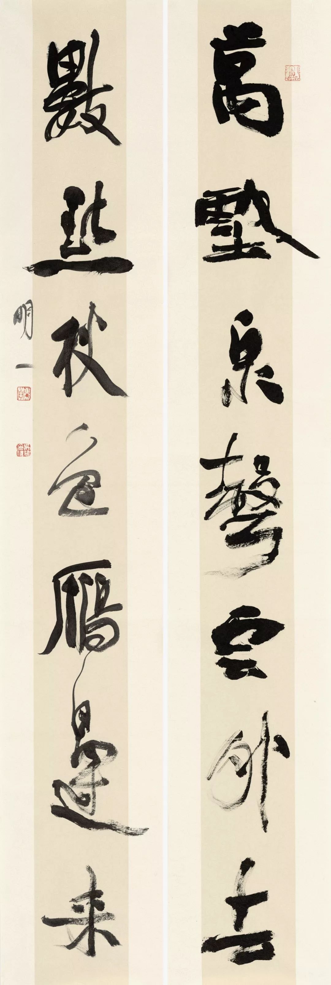 行草《万壑数点》联