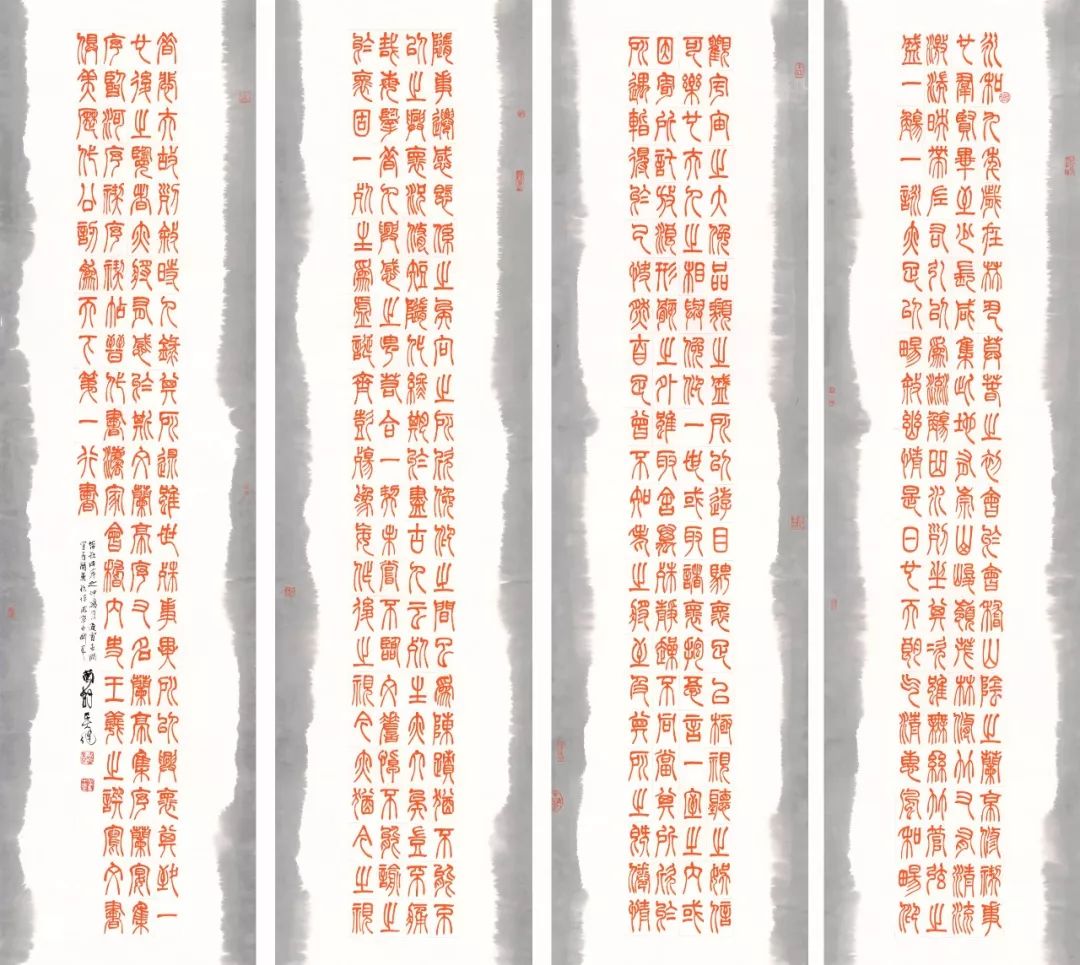 有幸的是,作为拥有两千二百多年悠久历史的文化古城、运河沿线的璀璨明珠,淮安历史上人杰地灵,名人辈出。特别是改革开放四十年来,随着地方经济高速发展,文艺创作也呈现繁荣景象,尤其书法领域异军突起,形成了独特的『淮安现象』。这是淮安的骄傲,这是淮安历史性的光辉。为承接淮安深厚的历史文化,为弘扬淮安书法艺术,淮安报业艺术馆承担起社会责任和历史责任,邀请了我市在历届『中国书法兰亭奖』获奖、入展书家十六人,创作出一百六十幅作品,举办专题展览。十六位书家用精品力作纪念《兰亭集序》。