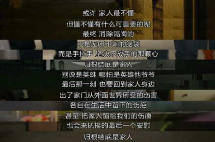 但即便如此又何妨?家人之间也许会有互相误解、相互厌烦的时候,但当你历尽千帆,归来仍有这么一个地方,在那里,爱你的人永远爱你。
