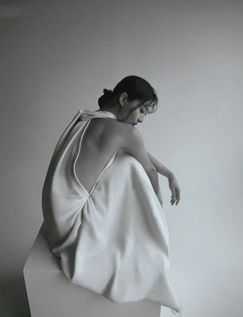 衣服几乎开叉到腰部以下,秀出精致的后背线条,仿佛油画里的美女,恬静娴雅,营造出让人只可远观的高级性感,看了是不是很上头呀!
