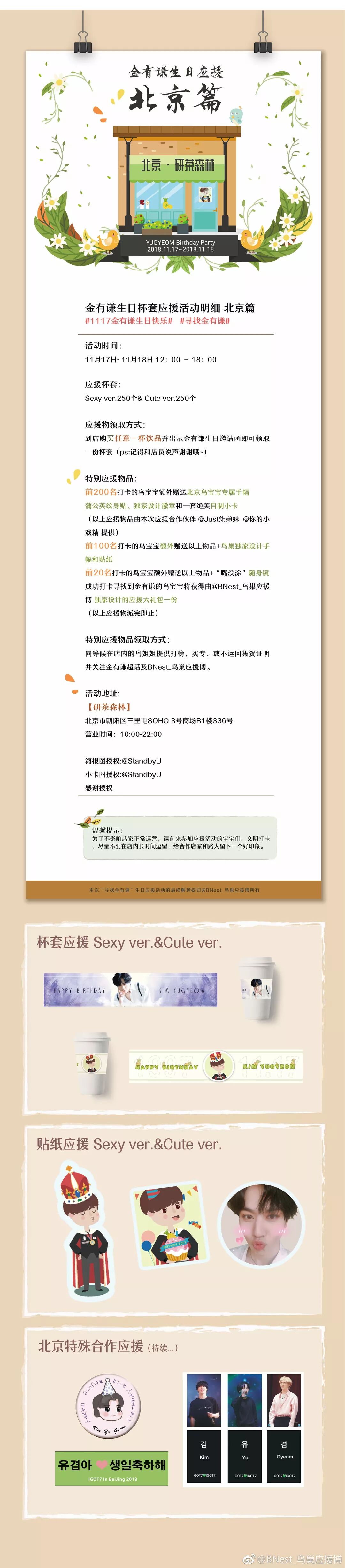 1117-1118真的是个好日子呀!是我们忙内的生日呀!最近一股生日应援风迅速在中国掀起,我们鸟姐姐也不例外!给我们的成员最好的应援哇!所以!一个新兴组织迅速崛起!它就是@BNest_鸟巢应援博,大家赶紧去关注一波吧!