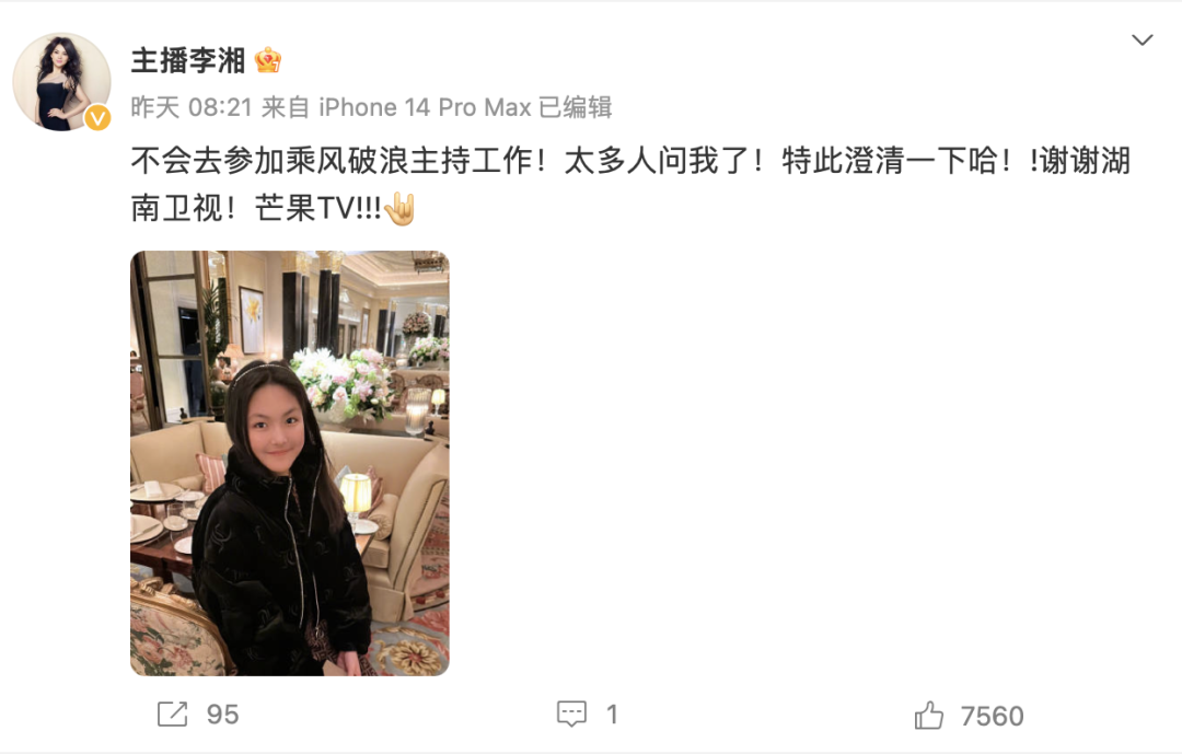 我更倾向于另一种说法,假设节目组真的向李湘发出了邀请,那么她拒绝的理由大概率是两个。