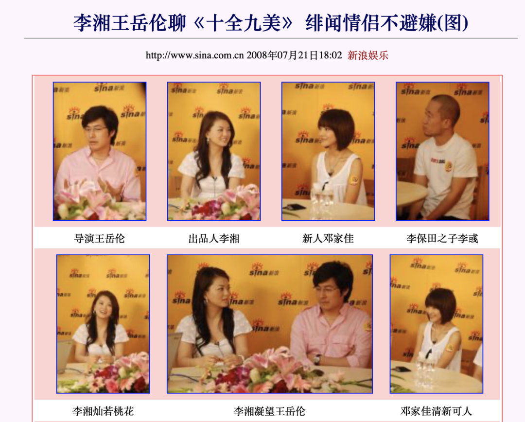 她投资拍摄了电影《十全九美》,导演正是第二任丈夫,王岳伦。电影宣传期,两个人的绯闻就已经满天飞,但李湘接受采访时总是顾左右而言他,不愿承认。