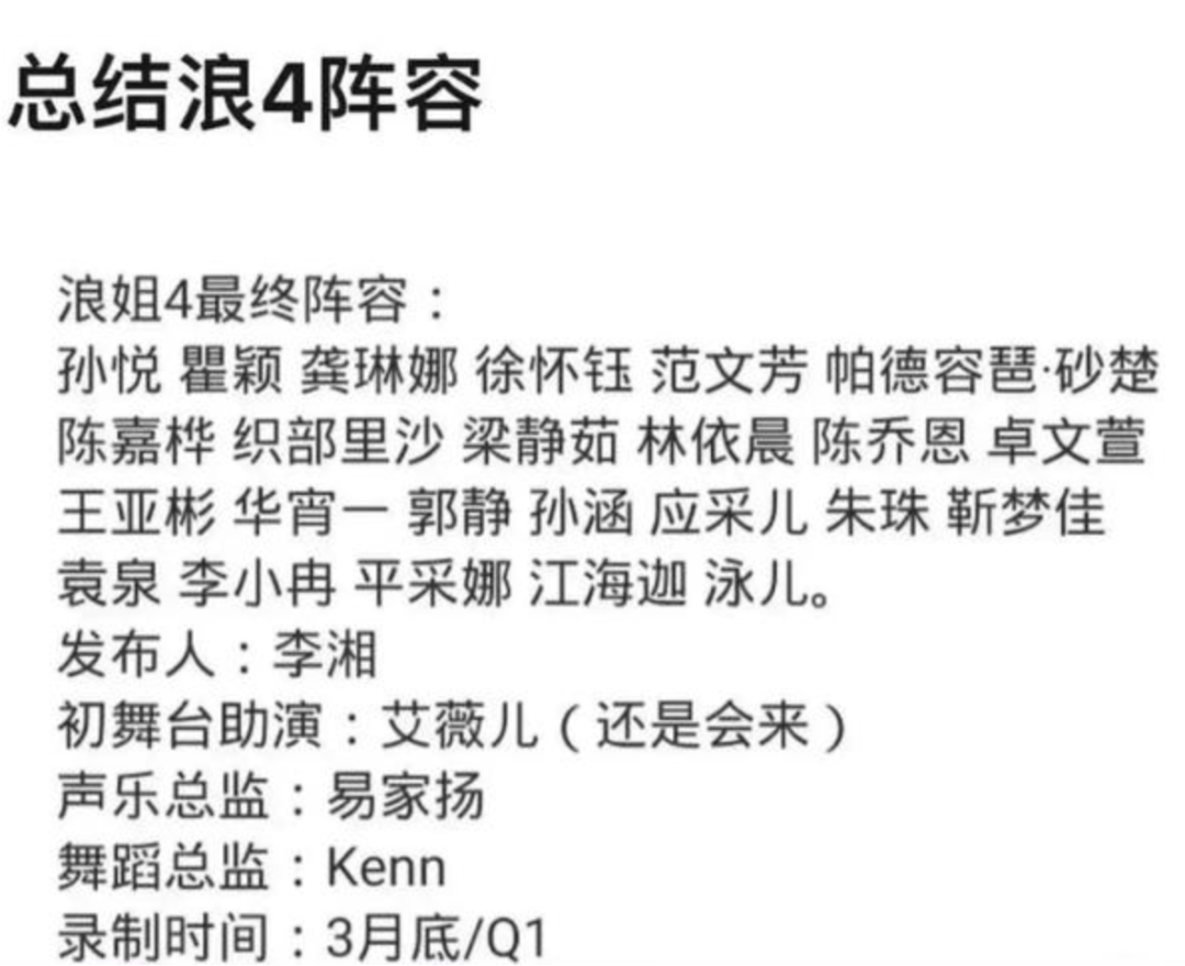 《浪姐》第4季的网传名单,遛了一大圈明星。