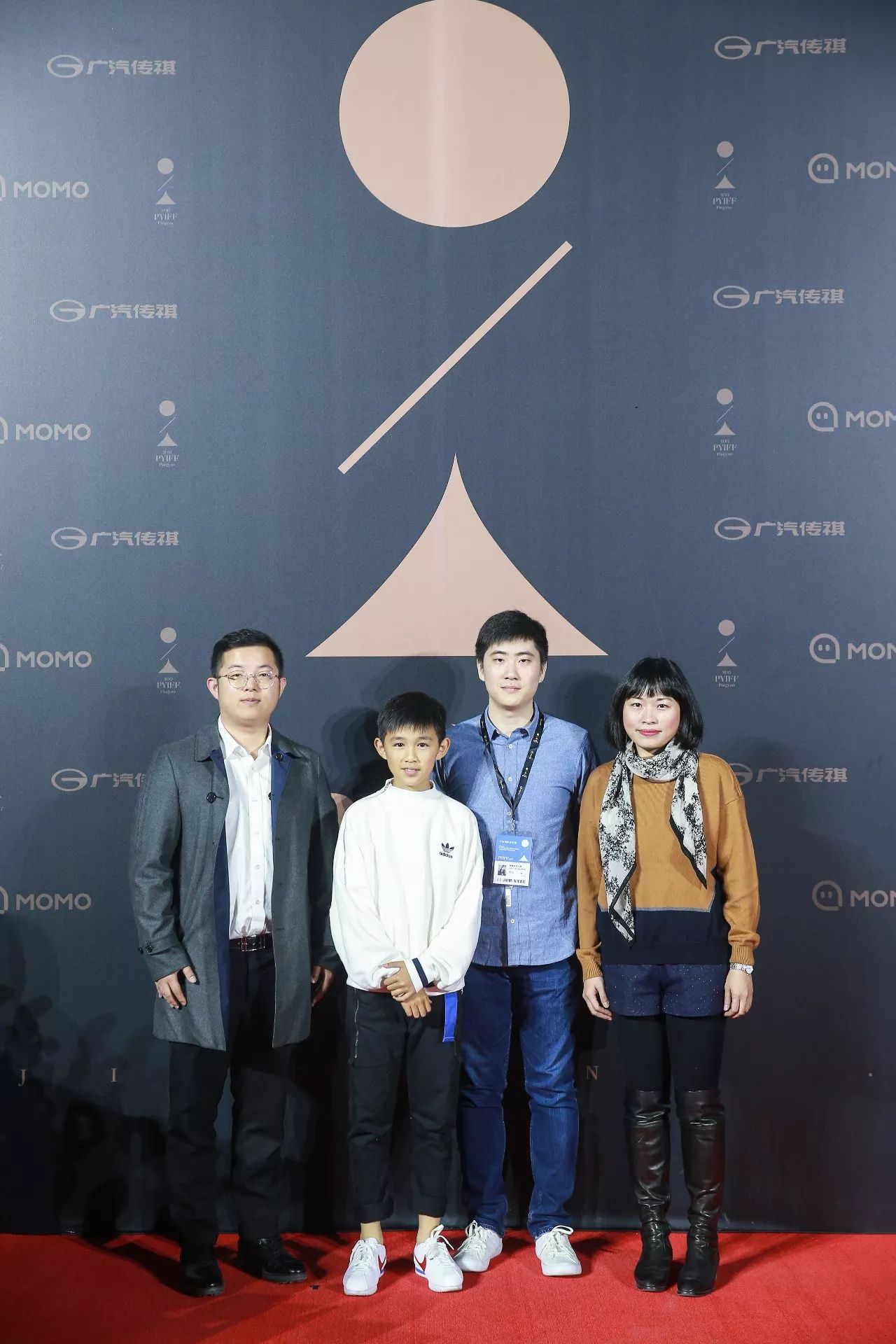 《西小河的夏天》首映红毯,出品人周洋,主演荣梓杉,导演周全,制片人刘宛玲(由左至右)