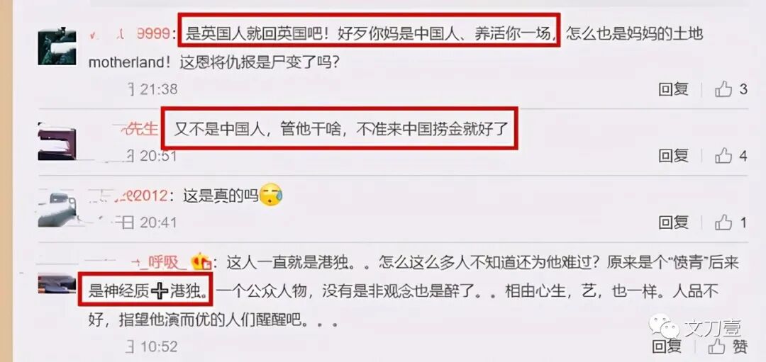 黄秋生,活该走到了无家可归的下场 文刀壹 港台男星 2022-01-26 22:00:28 570 创作不易,用心坚持,欢迎请BaGua喝几杯爱心咖啡!打赏并支持本文 打赏并删除本文 文/文刀贰一、在香港回归以前,中英组合的家庭很普遍。黄秋生就出生在这样的家庭。他的父亲曾是英国皇家空军飞行员,叫做弗雷德里克·威廉·佩里。他的母亲是个女佣,叫做黄尊仪。黄秋生的出生算是有点意外。因为他的母亲曾患有重病,本来以为不能生育,但后面还是把他生了下来。可是生下来后,母子两个就开始了煎熬的生活。因为他的英国父亲只管生,不管养。黄秋生4岁的时候,他的英国父亲便遗弃了他们母子,带着原配及子女去了澳大利亚生活。就这样,黄秋生开始了与母亲相依为命的生活。黄秋生9岁的时候,生疝气需要动手术,但是妈妈没钱,只能给他的生父打电话。电话接通后,他生父说电话费是你们出还是我出?听到这样的话,黄妈妈沉默地挂了电话。从此以后,再也没有联系过对方。也是因此,之后黄妈妈心情抑郁之下,给黄秋生喂了洗衣粉,有点同归于尽的心情。黄秋生随着年龄渐长,混血儿的特征越发明显。因为这个身份,他开始被嘲讽孤立,同时被起了一个难听的称呼“鬼佬”。可能在如今来看,混血儿多是帅气美丽的男女,算是赞美。但是在香港未回归前那个时代,大概就是“杂种”的意思。对待这样的“番鬼仔”,除了谩骂之外就是绝对的孤立。年幼的黄秋生从小就开始自卑,等到别人孤立他的时候,更是极度自卑。这个时候,生活实在太过艰苦,他的妈妈改嫁了。但是在继父家里,他也没有感受到一点点的父爱。因为继父家里有好几个孩子,根本没法顾及他的成长。黄秋生的童年就在这样极度缺爱,极度自卑,甚至充满仇恨的生活中成长的。这样的成长环境,也养成了他偏执与叛逆的性格。少年时期,黄秋生因为不爱学习,没有得到老师的喜欢,又因为混血的身份,还受到别人的欺凌。在他15岁的时候,还差点被性 侵。童年的不幸,少年时的压抑,让黄秋生的内心越来越扭曲。中学没读完,黄秋生辍学了。此后的日子,他做过搬运工、装修工等等。这样的生活,直到开始接触影视后才改变。他在表演上的成就,离不开他从小面对的各种生活磨砺。因为他的混血长相,经常演“异族”的角色。虽然常被称为“烂片之王”,但他与常人迥异的演技,还是让他脱颖而出。因为独具特色的表演,黄秋生拿到了三座金像奖最佳男主角奖。可这样一个本该前途不错的艺人,最后却因为个人的言行举止,彻底把自己作死了。二、2007年,正值香港回归10周年,黄秋生献上爱国之作《老港正传》。在片中,他说喜欢看国产电影。他说自己有一个梦想,就是希望有一天,可以去北京天安门看看。他想感受一下祖国的大好河山,想要拍些照片。这个时期,他表现出的是爱国情怀。黄秋生还曾把伟人当作偶像,他会背伟人语录,家里挂着伟人画像。他上《康熙来了》时,《沁园春·雪》他可以脱口而出。他说,昔日因我一番爱国言论被封,现在我就要吟咏你们听不得的歌。黄秋生,通过这些来展现他的爱国情怀。他这种爱国者的态度,在当时受到很多内地观众的喜爱,觉得他这个人很敢说。而他之后的嘴脸,曾让很多人想不通,怎么可以一下子就完全像变了一个人一样?一切还是因为他那极端偏执与反叛的性格。这让他的思想非常容易“疯魔”。所以,他之后触碰红线的行为,直接把自己的前途毁掉了。翻脸就跟翻书一样。2014年,黄秋生跟张某轩一起领唱了一个短片《谁还未觉醒》中的主题曲《问谁未发声》。他这个行为直接触及到了红线。他唱完歌曲后,没有过瘾。还把短片发到外网上,呼吁大家观看传播。可能当时黄秋生想的,自己放到外网上面,不会那么快被人发现,或者被人发现自己可以抵赖。毕竟他当时在内地捞金挺多,不想放弃内地市场。可是没有想到,这首主题曲的多个版本都非常火爆。而他领唱的版本超过20万播放量,直接被推上了风口浪尖。这事传播开后,在国内引起了轩然大波,黄秋生等一些触碰红线的艺人,直接被千夫所指。但是黄秋生还舍不得内地市场,想着再挣扎一下。他直接在社交平台发布多条声明,否认了自己的立场。说自己没有参与,没有支持,还骂那些人是s b。这个时候,黄秋生老脸也不要了。他还想着凭借之前的爱国形象来糊弄民众。尽管他百般否认,无论他怎么撇清自己,但是他做过的事情依然难逃民众的眼睛。至此,黄秋生身上被打上了“反骨仔”的烙印。在此之后,暴露了真实嘴脸的黄秋生开始变得更加肆无忌惮了。不仅支持那些“反骨仔”,还对国内充满仇恨,一有机会就抹黑国内。在某事件风波中,他不仅颠倒黑白,还抹黑特 区。2019年,黄秋生第三次获得香港电影金像奖最佳男主角奖,大概也是最后一次了。演技再次得到肯定的他,背后依然还是“反骨仔”的行为。这年12月,黄秋生到日本宣传新片,被日媒问到关于敏感问题时,他竟然呼吁日本人不要来港。当年随着某事件持续发酵,黄秋生干脆不口头喊了,直接实际行动。在网上曝光的照片中,他跟“反骨仔”头目还亲切合影。当网友质问他的时候,他又说自己不是中国人,是英国人。面对这样的黄秋生,正如网友所说,他是个“神经质”。网友也劝他,是英国人就回英国。三、其实黄秋生也找过自己的生父。在2017年5月,黄秋生在外网发了一张全家福,