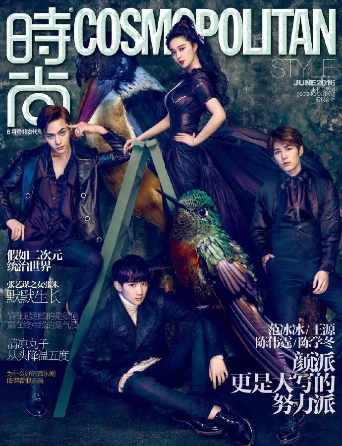 《爵迹》家族的杂志群封一出来,就引起大家的关注。其中陈伟霆这组四人封面,更是被称为超强颜值。强强联合的画风,也引发了大家的脑洞,在某论坛上,称四人为吸血鬼家族。管事的大姐、作妖的大哥、本性纯良的二弟、新近的小弟,这个家族很带感有木有?!