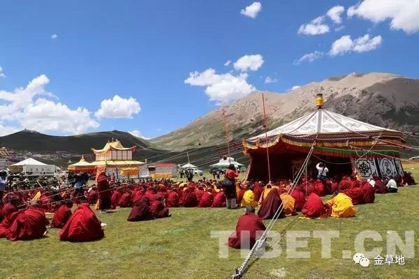 夏日草原的阳光下,班禅大师在贡萨寺准备的华帐宝座上进行讲经和灌顶,同时大师还从佛法的角度对僧人和群众进行了遵纪守法、团结互助、积极改善生活、改正恶习、维护民族团结和社会和谐等方面的教诲。