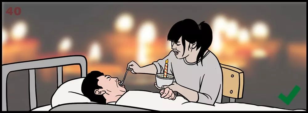 在我40岁生日那天,家人在流食上插蜡烛为我庆生。