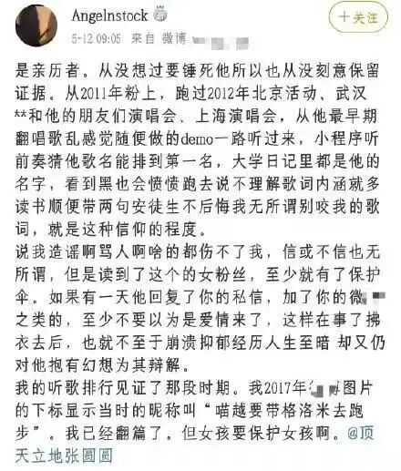 这次内容和爆料人视角有些许不一样了,但相同的是,依旧没有证据,理由是许嵩还没倒所以不想爆,避免姐妹被网暴。