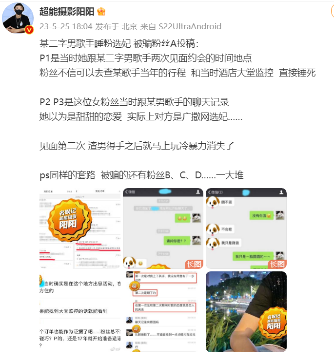 无非就这几种可能:爆料是编的;男歌手不是许嵩;被骗女孩没有一个想过保留证据。