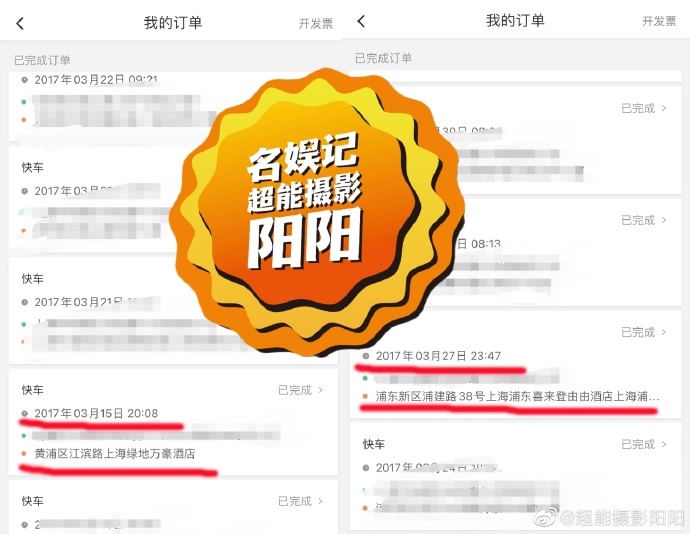 在狗仔和粉丝提供的证据里,有一个打车的订单截图和酒店监控。