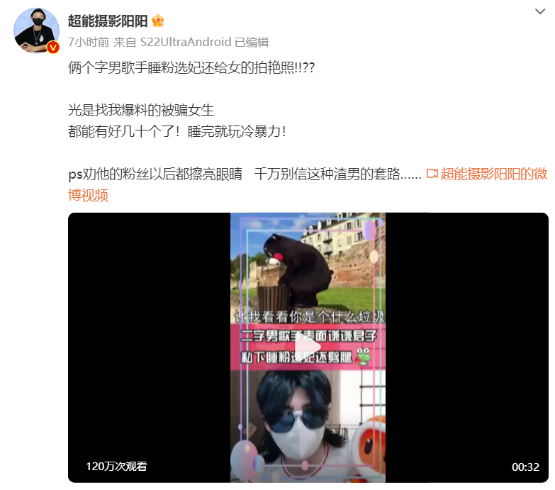 昨天两位坏了狗仔名声的狗仔共同爆料,说有个两个字男歌手不仅选妃睡粉,还给女生拍艳照、PUA,睡过以后就立马冷暴力不理人: