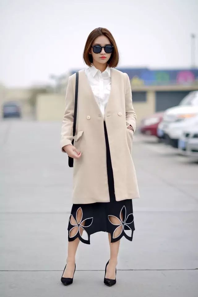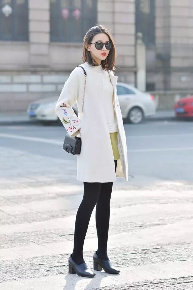 很多姑娘喜欢这么穿穿,也非常适合春天。需要提醒的是,千万不要拿黑色丝袜去搭配浅色高跟鞋!想让腿看起来更长,还是选择黑丝配黑高吧!