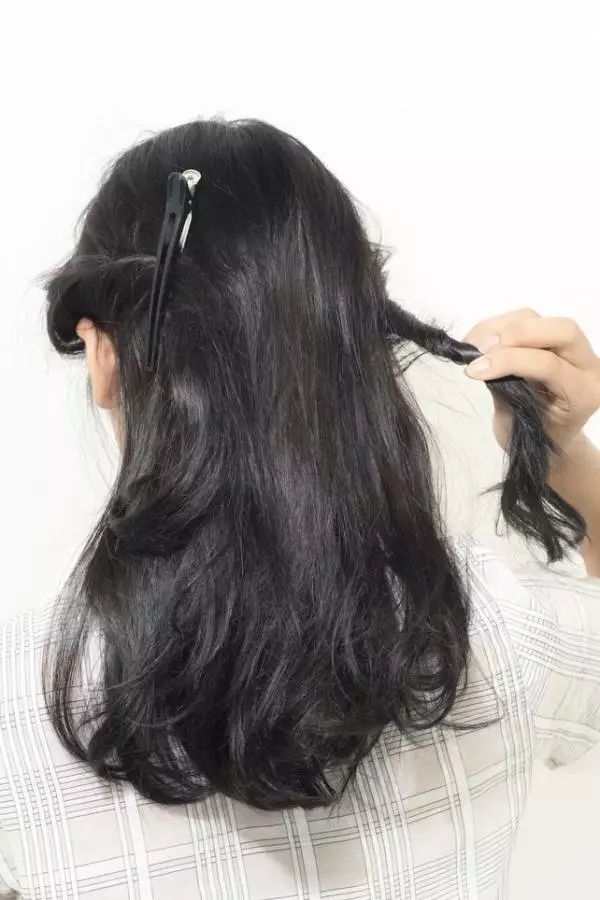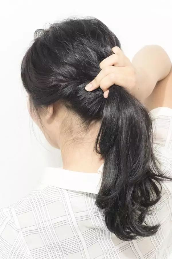3 同时一只手抓住马尾,抓松头顶的头发。