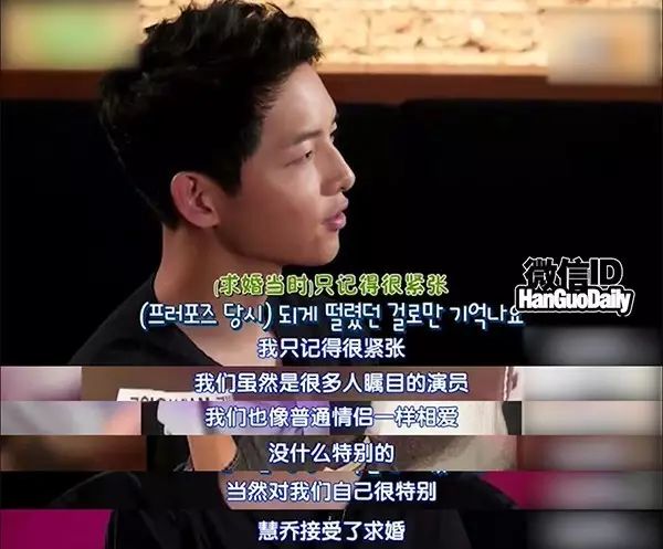 除了公开婚礼地点之外,宋仲基近日在录制某综艺时还大秀恩爱,甚至透露了许多求婚细节,让众多粉丝大呼好甜蜜。在被记者问及求婚问题时,宋仲基则大方回答表示当时很紧张。