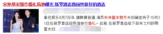 而随着双宋CP婚期不断接近,二人的婚礼将会是什么模样,也备受众人的期待。近日有韩媒曝出,双宋CP的婚礼将在韩国新罗酒店举行。