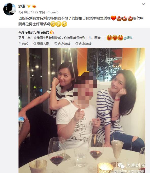 4月16日是舒淇和徐静蕾的生日, 舒淇40岁,徐静蕾42岁了, 两个年龄已经40+的好盆友在一起过了生日 开心的氛围用徐静蕾的话来说就是:特别快乐! |