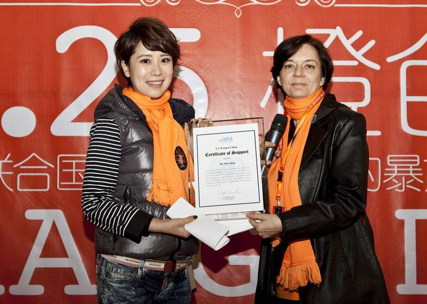 腾讯娱乐讯(文/付超)10月22日,海清出席由杭州市携手联合国共同举办的2015性别平等与企业社会责任(杭州)国际会议暨“他为她”行动,被联合国助理秘书长兼妇女署副执行主任Lakshmi Puri授予亲善大使奖,并被任命为联合国妇女署亲善大使。