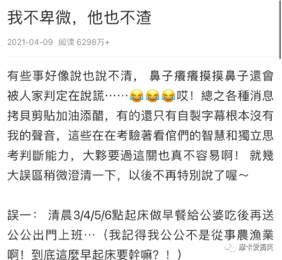 每天早上4点起床给大家准备早餐,遛狗,六点准时去叫公公婆婆起床,照顾公婆的衣食住行,因为没有跟老公住在一起,所以不经常见面。