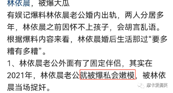 正是因为夫妻二人没有住在一起,所以他们感情生活经常被大家诟病,很多人都纷纷直呼她老公出轨,曾经林依晨的老公出轨嫩模被她抓到,后来也不了了之。